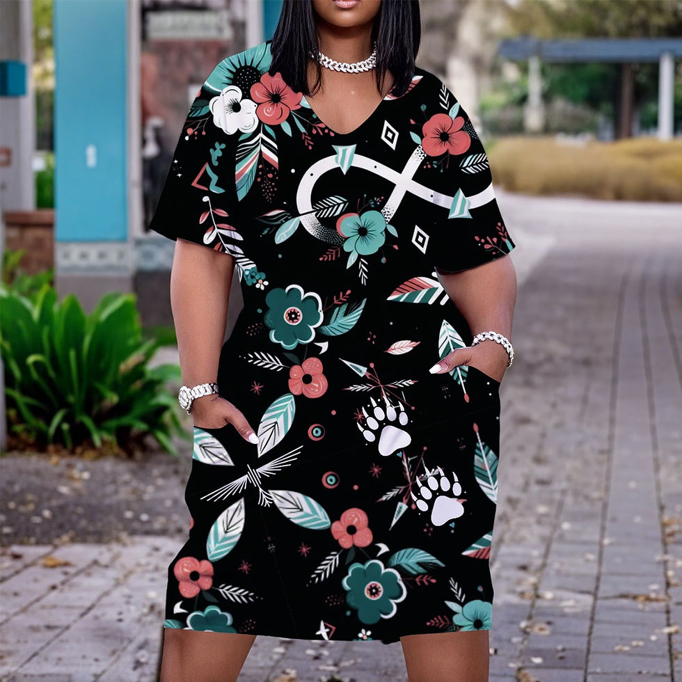 METIS ROSE |:| V Neck Short Sleeve Dress|Plus Size