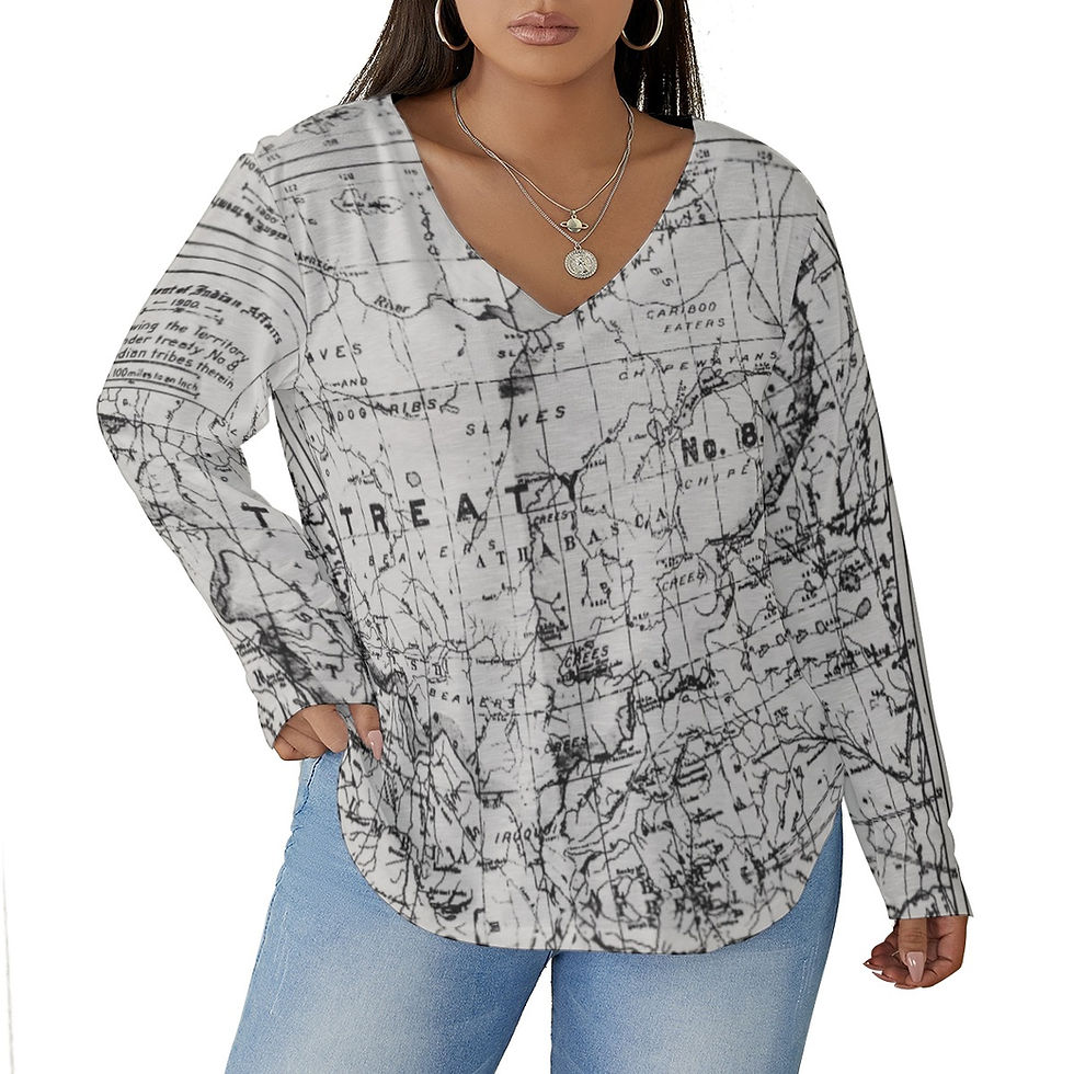 TREATY 8 |:| V-neck T-shirt With Curved Hem (Plus Size)